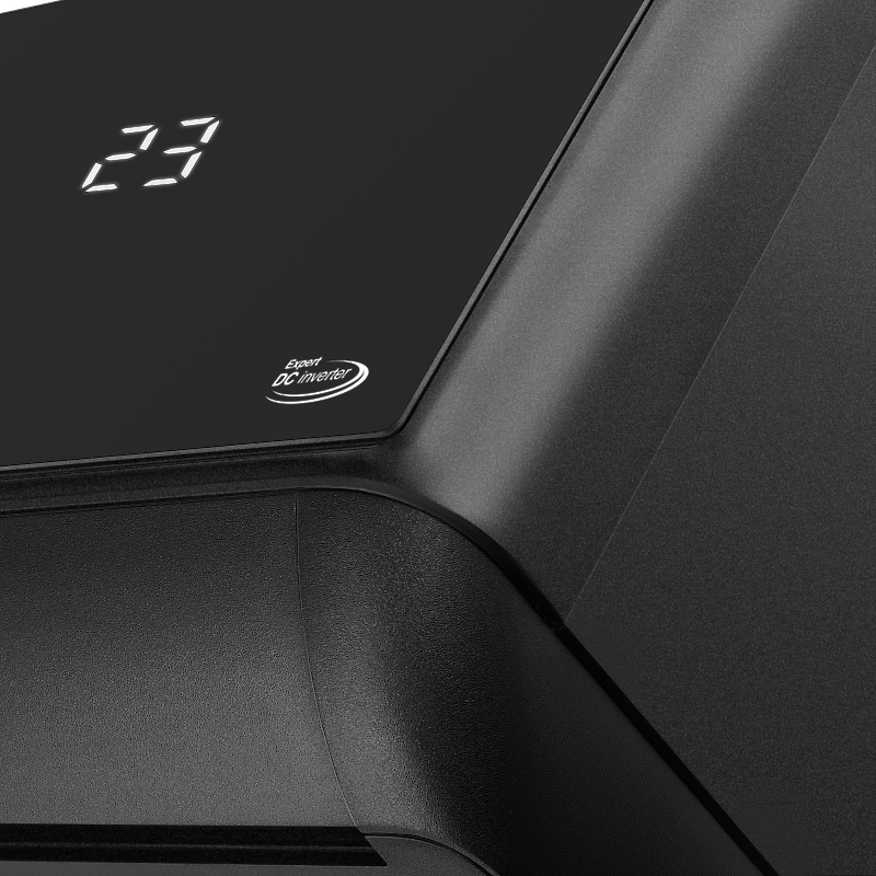 Кондиционер имеет модный черный дизайн, который отлично впишется в современный интерьер. Он также обладает низким уровнем шума, что позволяет использовать его в спальных комнатах или офисах, не беспокоясь о лишнем шуме.